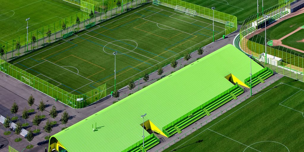 - Закрытое футбольное поле с металлическим покрытием